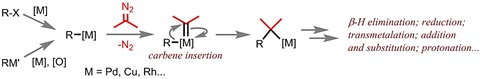 卡宾是有机反应的一类重要中间体,其特征是具有高度的反应活性,但是相应地反应的选择性差,在合成中的应用有限。通过卡宾与金属的络合形成金属卡宾可以有效地稳定这类活泼中间体,从而极大地提高其反应选择性。经由金属卡宾的催化反应已经发展成为有机合成化学中的一个十分重要的领域,其中一些反应在药物分子等的合成中得到工业应用。金属卡宾反应在化学生物学以及材料科学等领域也有重要的应用。