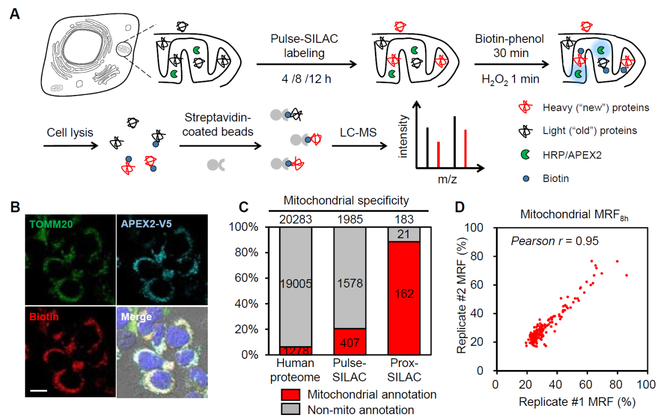 图1. prox-SILAC标记方法在线粒体基质中的应用