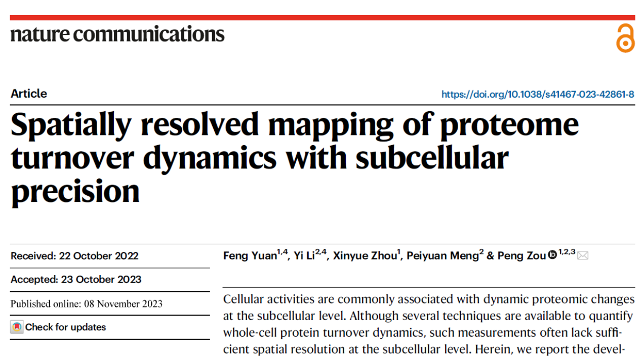 邹鹏课题组开发定量蛋白质组学方法prox-SILAC揭示亚细胞区域内蛋白质动态变化
