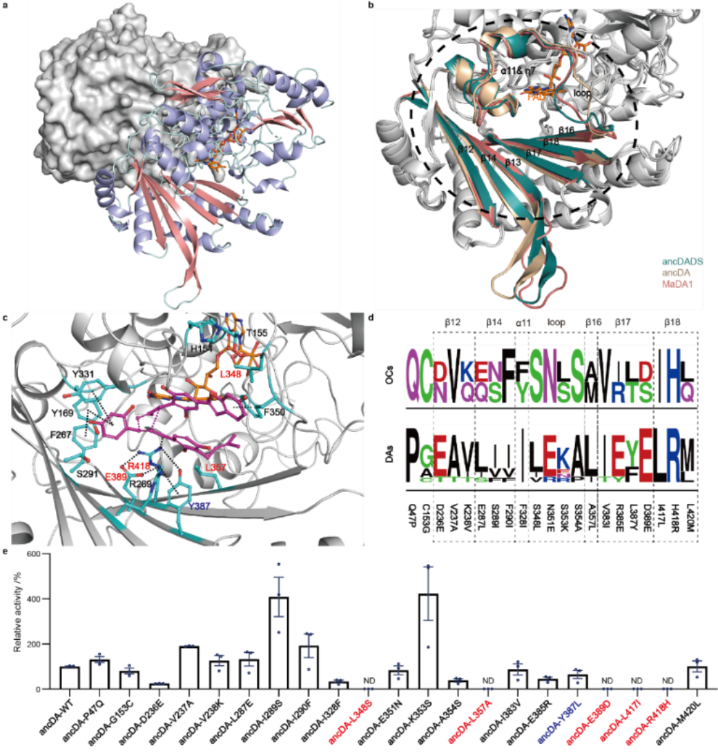 图2,D-A酶的结构、活性口袋和关键突变残基