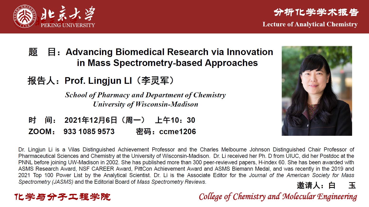 【分析化学学术报告】Advancing Biomedical Research via Innovation in Mass Spectrometry-based Approaches