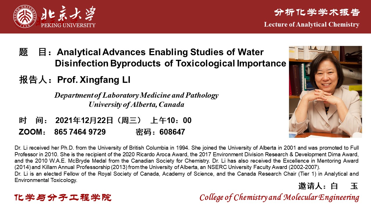 【分析化学学术报告】Analytical Advances Enabling Studies of Water Disinfection Byproducts of Toxicological Importance