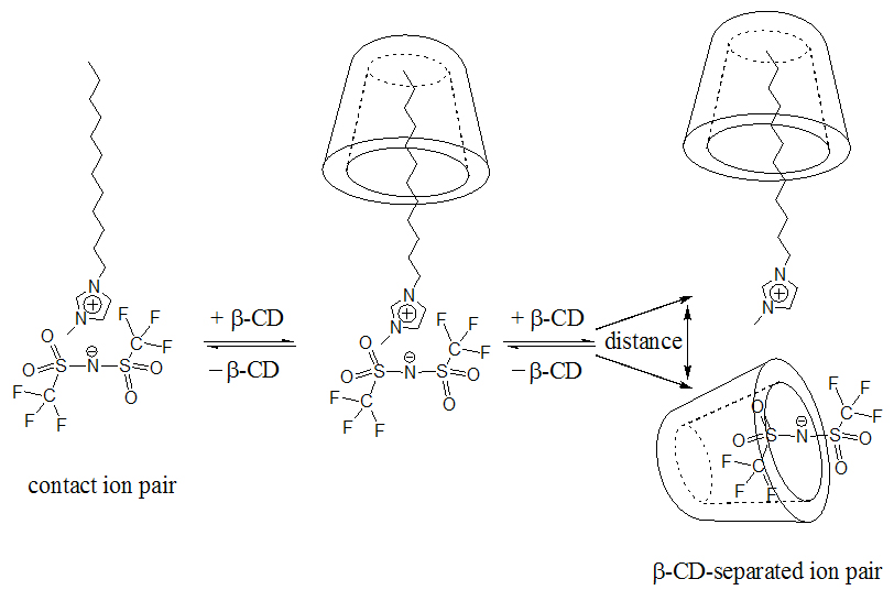 (5) 我们利用该模型进一步解释了C12mimTf2N与b-CD的作用过程(Scheme 2)。