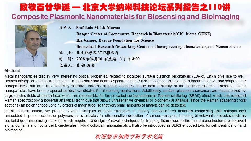 致敬百廿华诞 — 3003新葡官方网站纳米科技论坛系列报告之110讲-Composite Plasmonic Nanomaterials for Biosensing and Bioimaging