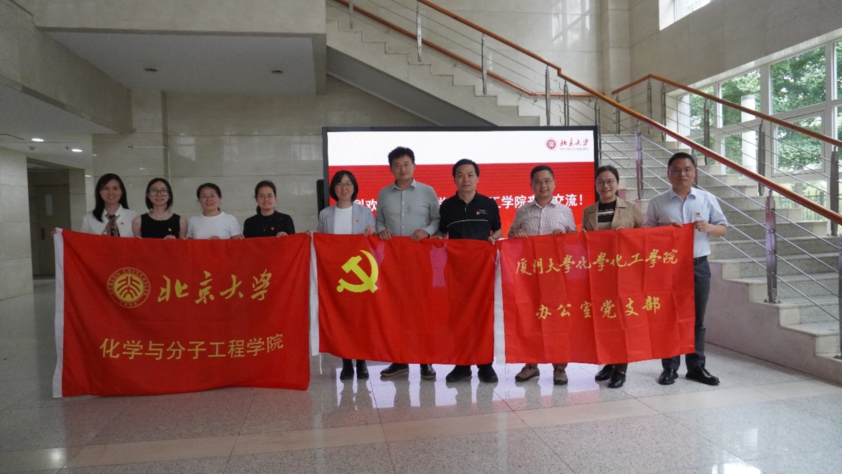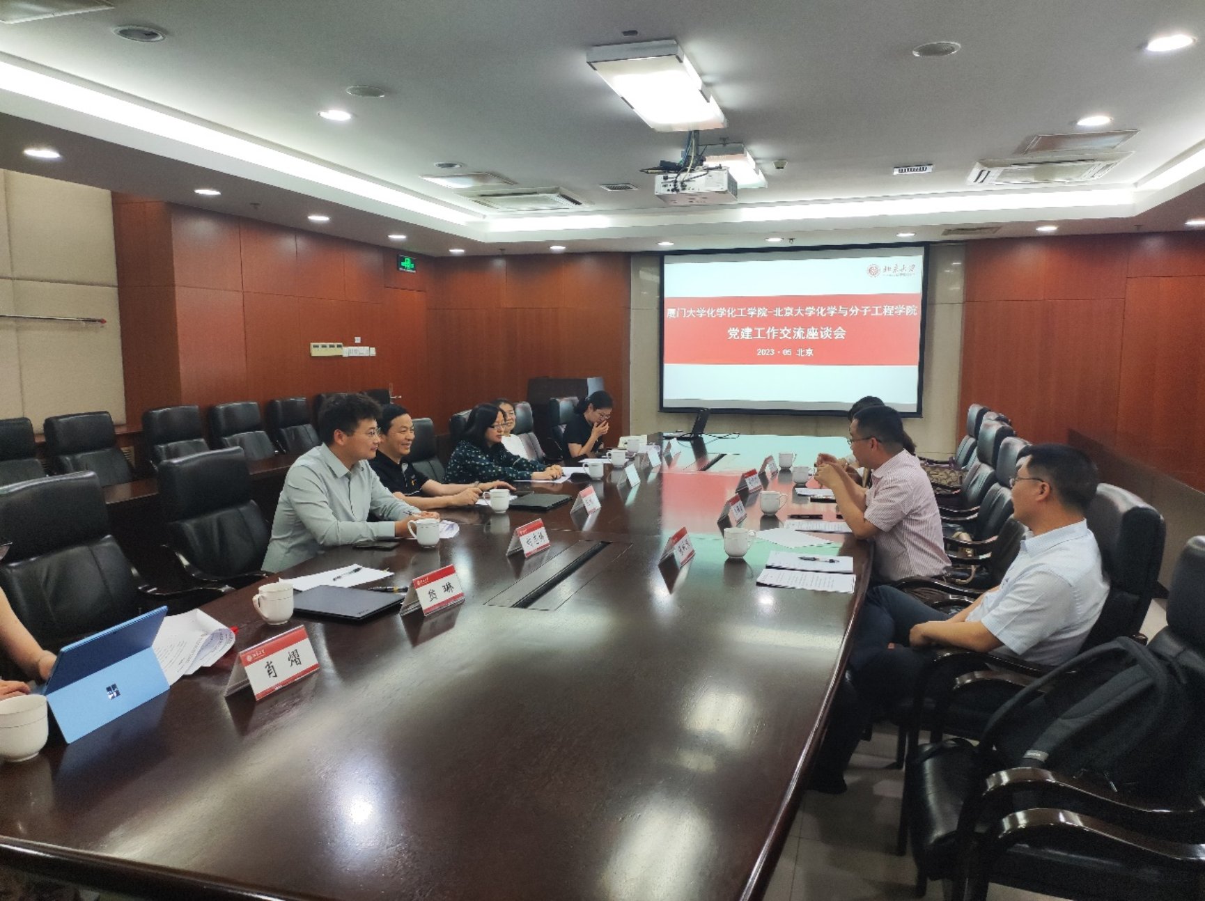 2023年5月24日,为全面贯彻落实党的二十大精神、深入开展学习贯彻习近平新时代中国特色社会主义思想主题教育,进一步探索新一轮“双一流”学科建设,厦门大学化学化工学院(以下简称厦大化院)化生系主任高锦豪教授带队,到3003新葡官方网站(以下简称北大化院)开展联学共建交流座谈会,会议由北大化院副院长陈继涛主持。