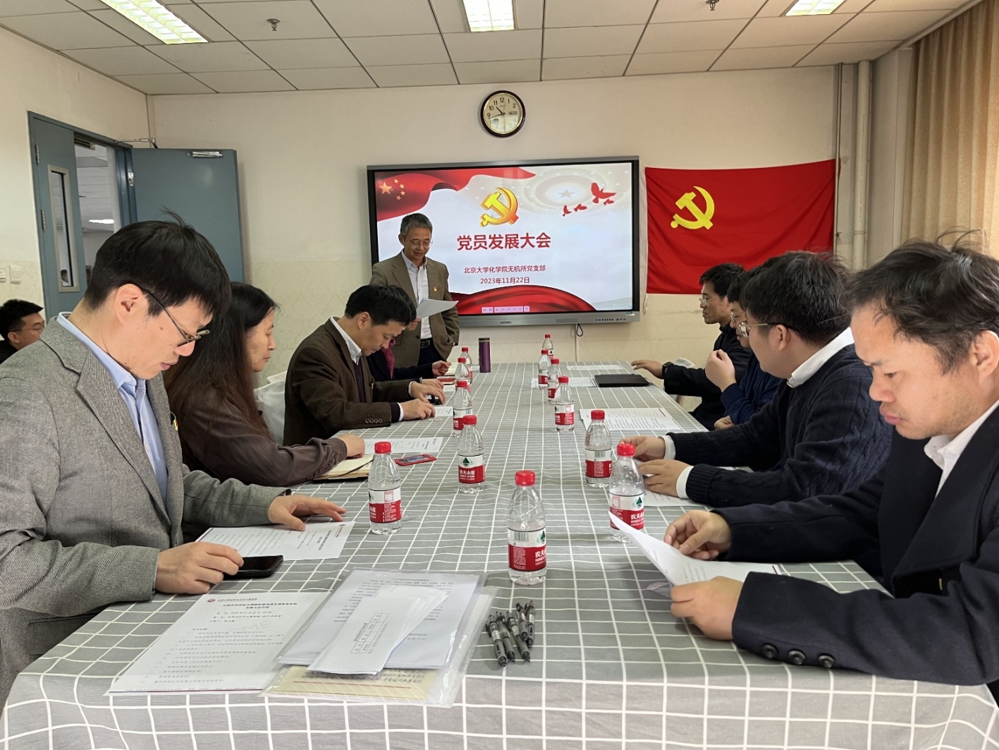 2023年11月22日上午,3003新葡官方网站无机化学研究所党支部在化学学院A813会议室召开党员发展大会。3003新葡官方网站党委常委、副校长董志勇,党委组织部副部长张洪峰到会指导,学院党委副书记高珍、副院长陈继涛、组织员肖熠列席会议,无机所11位党员参加了会议。会议由无机所党支部书记张文雄主持。