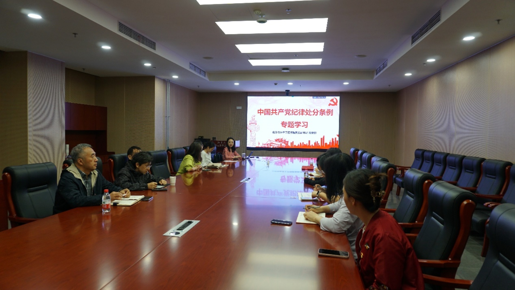 2024426日,机关后勤党支部在化学学院CB213会议室开展了《中国共产党纪律处分条例》的集体学习,化学学院党委副书记、机关后勤支部的党委联系人邓安琪领学,机关后勤党支部的全体党员参加了集体学习。