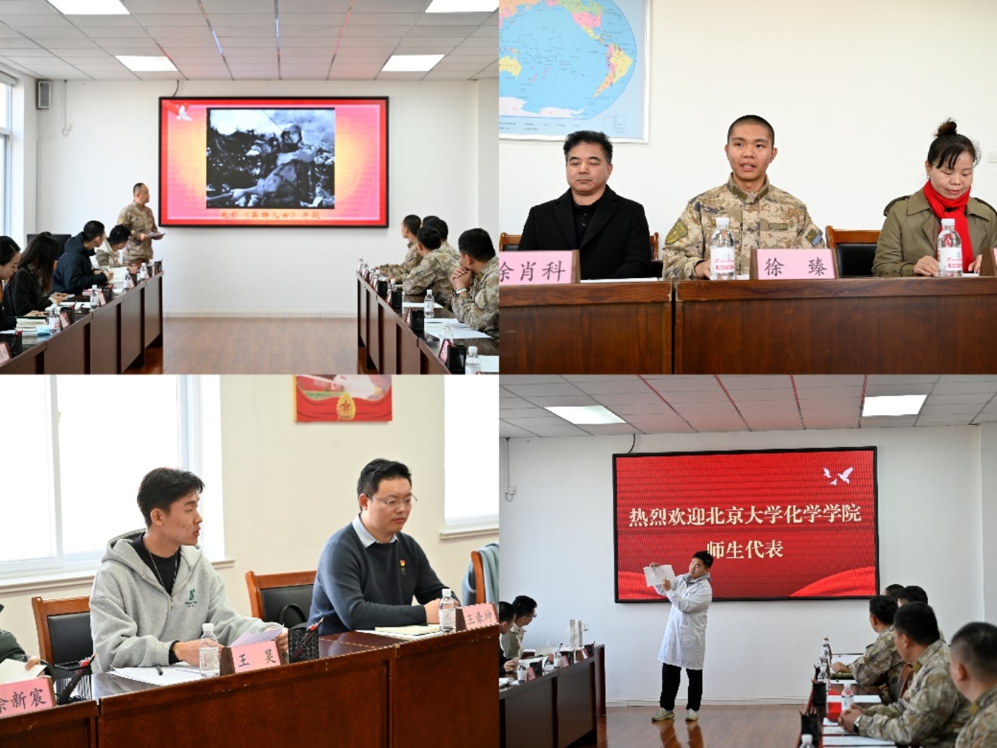 携笔从戎赴海疆,雏燕展翅齐翱翔。本次共有3位北大学子参与91040部队的新兵训练,在训练中均有着优异的表现。结业汇演结束后,实践团一行与部队领导、北大入伍学生及学生家长代表开展座谈。部队领导首先对化学学院实践团的到访表示热烈欢迎,对参会人员与部队基本情况进行介绍。随后,部队政工领导讲授了《锻造钢铁意志,争当血性军人》国防知识专题党课,强调了血性对于军人的重要性以及如何锻造军人的血性。化学学院入伍大学生徐臻汇报了入伍以来两个多月的学习与成长经历,从学习叠被子一步步走到荣登军营三千米长跑“龙虎榜”,徐臻表示在军营自己获得了思想、意志、体能全方位的成长。邓安琪代表学院向部队表达了感谢,介绍了北大化院在征兵工作与大学生士兵培养方面的优良传统,并勉励徐臻坚定理想信念,在军营持续学习,争做“四有”优秀士兵。随后,化院科普宣讲团成员孙庆斌以隐蔽战线情报传递入题,向与会官兵讲解并展示了隐形墨水的工作原理;化院退役大学生士兵代表王昊对其军营体会、复学经历做出汇报。最后,邓安琪代表学院向部队赠送纪念品,部队领导回赠《2024年训练纪实》照片集。座谈会结束后,部队领导带领实践团参观部队营区、战士宿舍,切身体会国防和军队现代化建设成果。