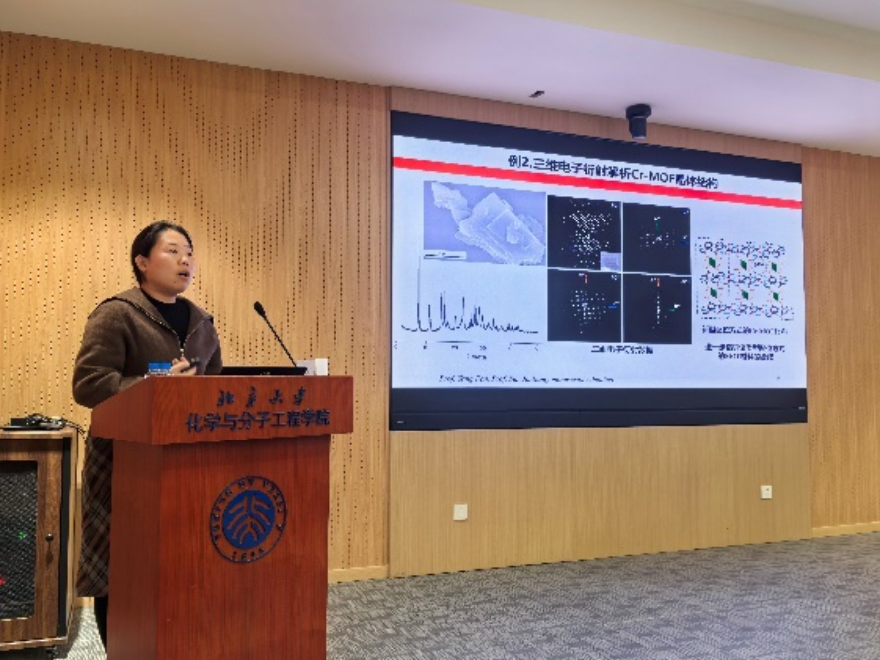 在技术报告环节,理化所夏静正高级工程师作了题为《缺陷催化剂电子显微学》的报告;理化所田利丰高级工程师作了题为《氦离子显微镜应用案例分享》的报告;分析测试中心王晓鸽高级工程师作了题为《三维电子衍射技术用于微纳晶体结构解析》的报告;分析测试中心宋环君高级工程师作了题为《分子材料与纳米加工实验室介绍》的报告。