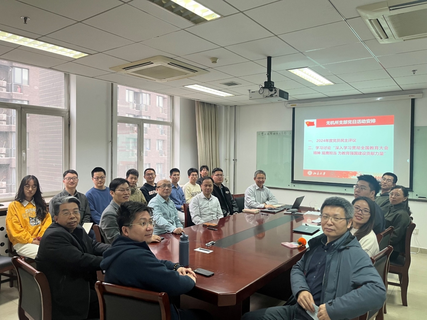 首先,党支部书记张文雄代表支委会对2024年度工作进行述职。张文雄介绍了支部在2024年度开展的主要工作,包括到北大红楼开展教育实践、黄闻亮同志转正、与有机所党支部在安阳市红旗渠和门头沟区黄安坨村举办联合党建、以及每月一次的主题党日活动等,并简述了2025年度的工作安排。刘志伟老师对无机支部2024年度的工作给予了高度评价和充分肯定。刘志伟强调,工作的顺利开展既得益于支委成员对工作的履职尽责,也离不开无机所党支部全体党员的协同配合与积极参与,充分展现了无机所党支部团结协作、凝心聚力的良好风貌。与会党员对支部工作进行了民主评议中,支部工作得到了党员们一致肯定。