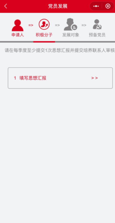 申请人在移动端提交的入党申请书,支部管理员审批通过后,申请人可提交“思想汇报”。