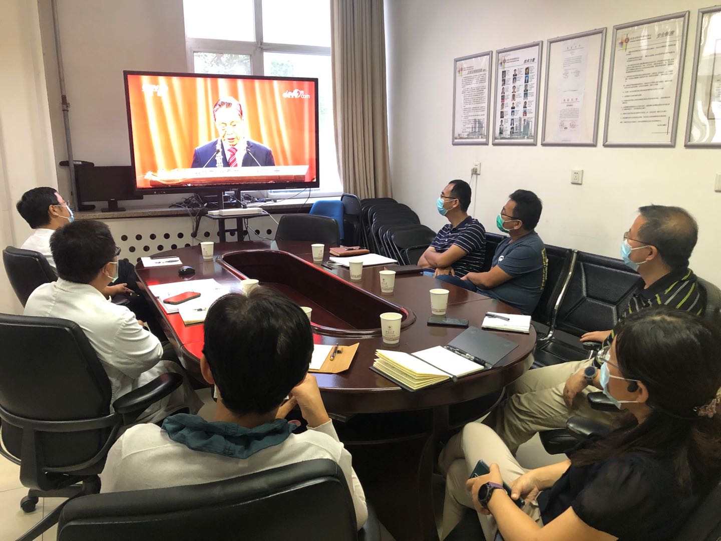 2020年9月8日上午10时“全国抗击新冠肺炎疫情表彰大会”在北京人民大会堂隆重举行,分析测试中心党支部组织全体党员在会议室通过大屏幕集中观看和学习了会议的全过程。10时整,全国抗击新冠肺炎疫情表彰大会开始。国歌在人民大会堂嘹亮回响,老师们肃立在小小的会议室内,同步感受着祖国蓬勃奋进的力量。随后,老师们同现场参会的同志们一起向在新冠肺炎疫情中壮烈牺牲的烈士和逝世同胞默哀。