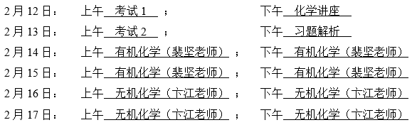 获得“第32届中国化学奥林匹克(初赛)”(省级赛区)二等奖及以上的、高一或高二优秀中学生可报名参加。此次联赛初赛中的优秀学生将可以直接参加随后举办的联赛决赛,决赛的时间和地点将于初赛后通知。寒假课堂将以此次报名为准,不再另行报名。此次活动的有关事宜通知如下:
