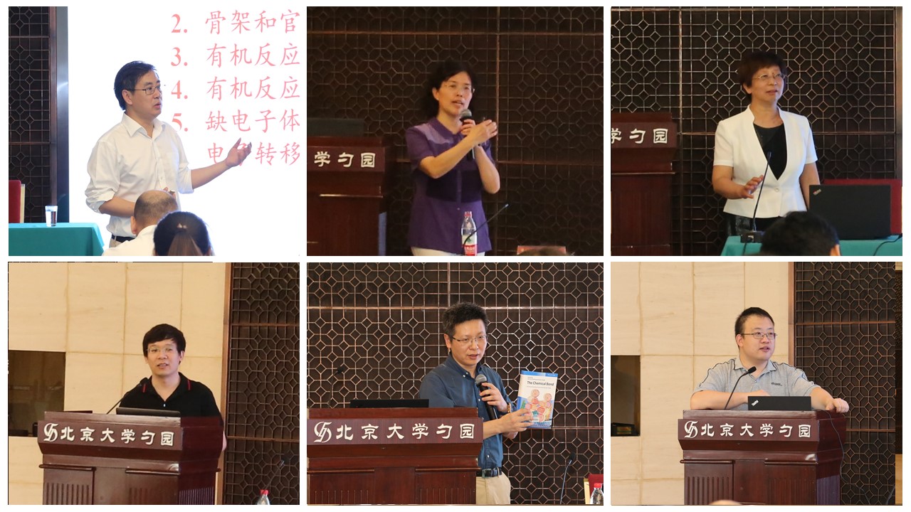 在为期四天的研修班课程中,段连运老师向中学老师们表达了“既要授鱼、也要授渔、更要授道”的化学教育理念,深得老师们认同。李娜老师向中学老师们介绍了现代分析化学的发展,之后针对酸碱滴定的误差计算进行了详细的讲授。朱月香老师针对结构化学中晶体对称性这一教学难点进行了深入讲解,同时介绍了自发单层分散现象。裴坚老师则结合中学化学知识,以电子、化学键等为主线,将繁杂的有机化学反应串联起来,给老师们带来了不一样的有机化学。王颖霞老师在普通化学的课程中与大家分享了元素与元素周期表的相关历史和知识;讲授了晶体、点群对称性的相关知识,并推荐了实用的化学软件。卞江老师的无机化学则以“分子性质与轨道杂化”为主题介绍了国际上较新的无机化学理论成果。李维红老师作了题为“从化学实验中学习元素性质”的报告,以铬、锰的氧化还原反应为例讲解了化学实验。陈兴老师作了“化学生物学:当化学遇上生物学”的学科讲座,从学科交叉的角度,拓展了老师们科学视野。马锴果老师的“诺贝尔化学奖、元素周期表、现代化学”科普讲座,从别样视角看待化学,让人耳目一新。