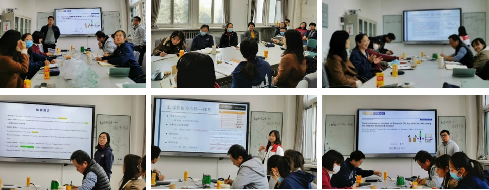 交流会由赵浩老师主持。基础仪器实验室的吕占霞、高珍和黄军三位老师围绕分析化学实验教学,分别介绍了发表在美国化学会J. Chem. Educ.期刊上的三篇文献。黄军老师详细介绍了用气质联用方法测定精油中的芳樟醇含量,为将要进行的气质联用实验项目改革提供了参考;高珍老师分享了如何用三种分析方法测定商品维生素C片剂中的抗坏血酸含量并进行方法对比,为开设任务型综合实验提供了思路;吕占霞老师选取的是关于本科分析化学课程全面调研的文献,内容包括课程设计、实验内容、教学方法、教学效果反馈、课程面临的挑战等多个方面,并介绍了本院仪分实验在新实验开发和多种教学模式方面的创新与探索。报告会过程中老师们将文献内容与我们现有分析实验教学进行比较,进行了深入的交流和讨论,为今后进一步优化分析化学实验教学内容、改善教学效果提供了借鉴。