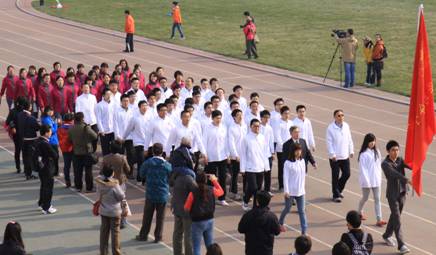 入场式上,我院运动员英姿飒爽,刘虎威书记走在队伍的前列