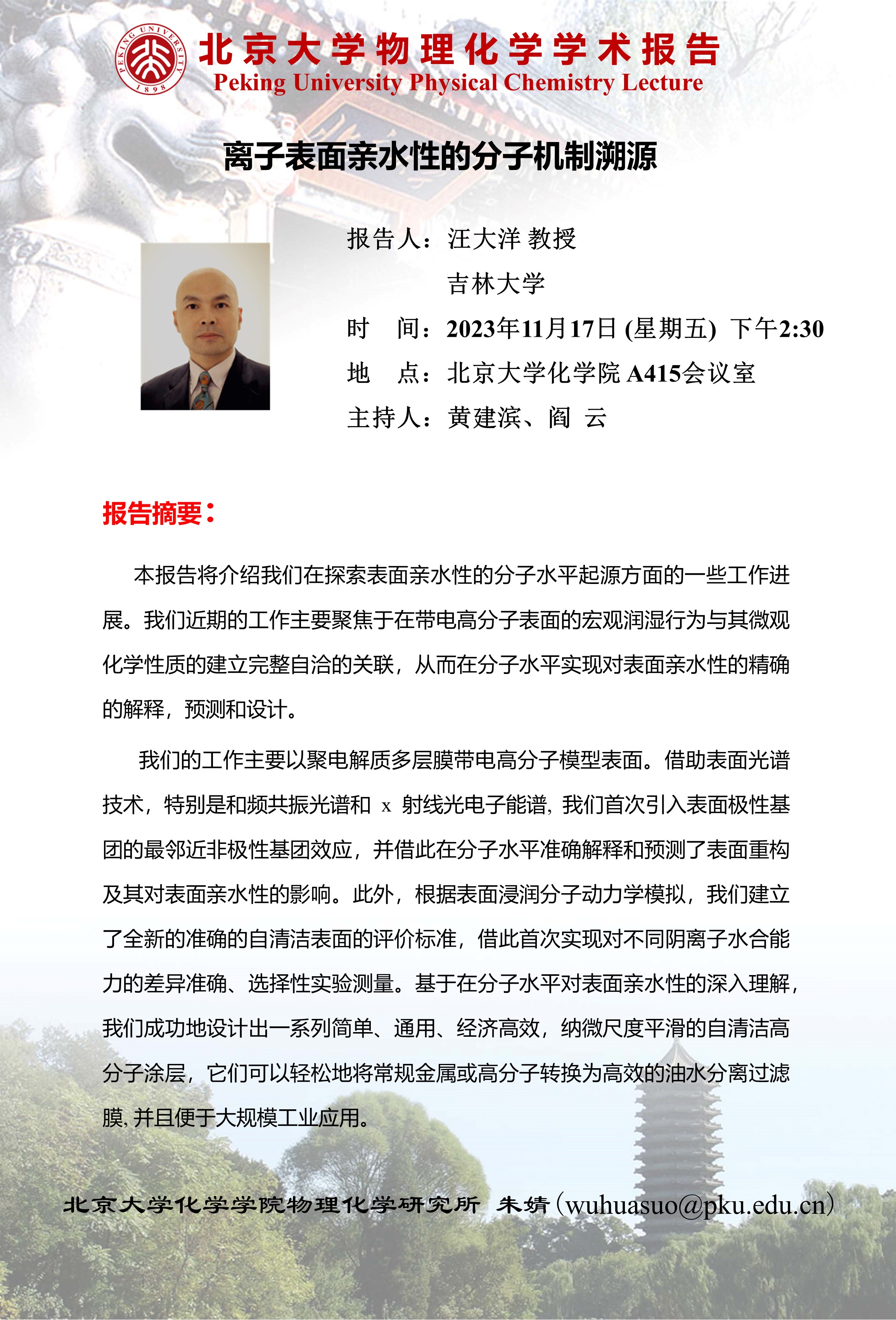 【3003新葡官方网站物理化学学术报告】离子表面亲水性的分子机制溯源