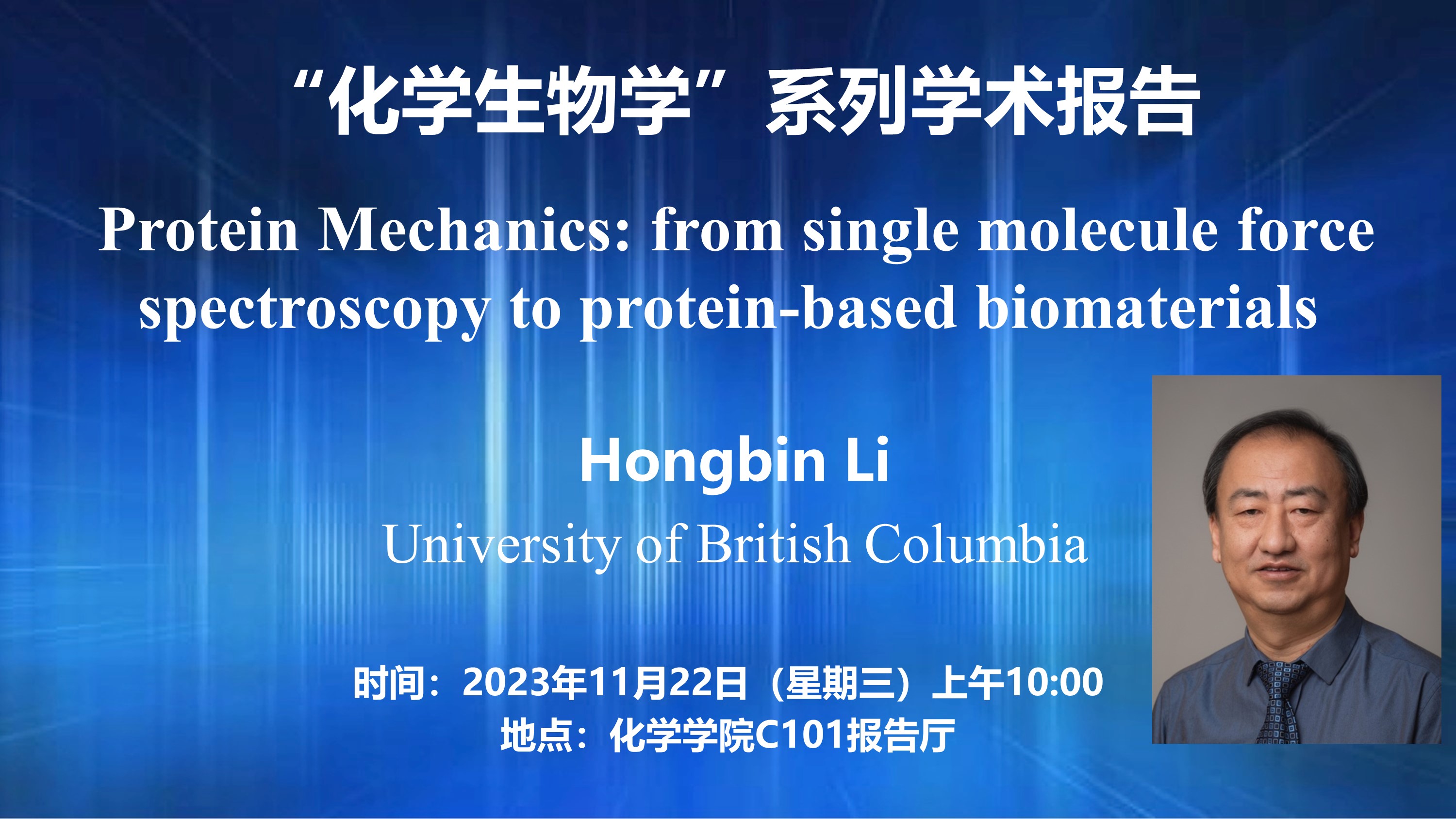 【“化学生物学”系列学术报告】Protein Mechanics: from single molecule force spectroscopy to protein-based biomaterials