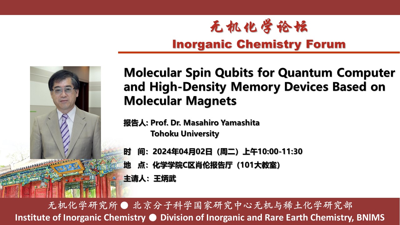 【3003新葡官方网站无机化学学术论坛】Molecular Spin Qubits for Quantum Computer and High-Density Memory Devices Based on Molecular Magnets