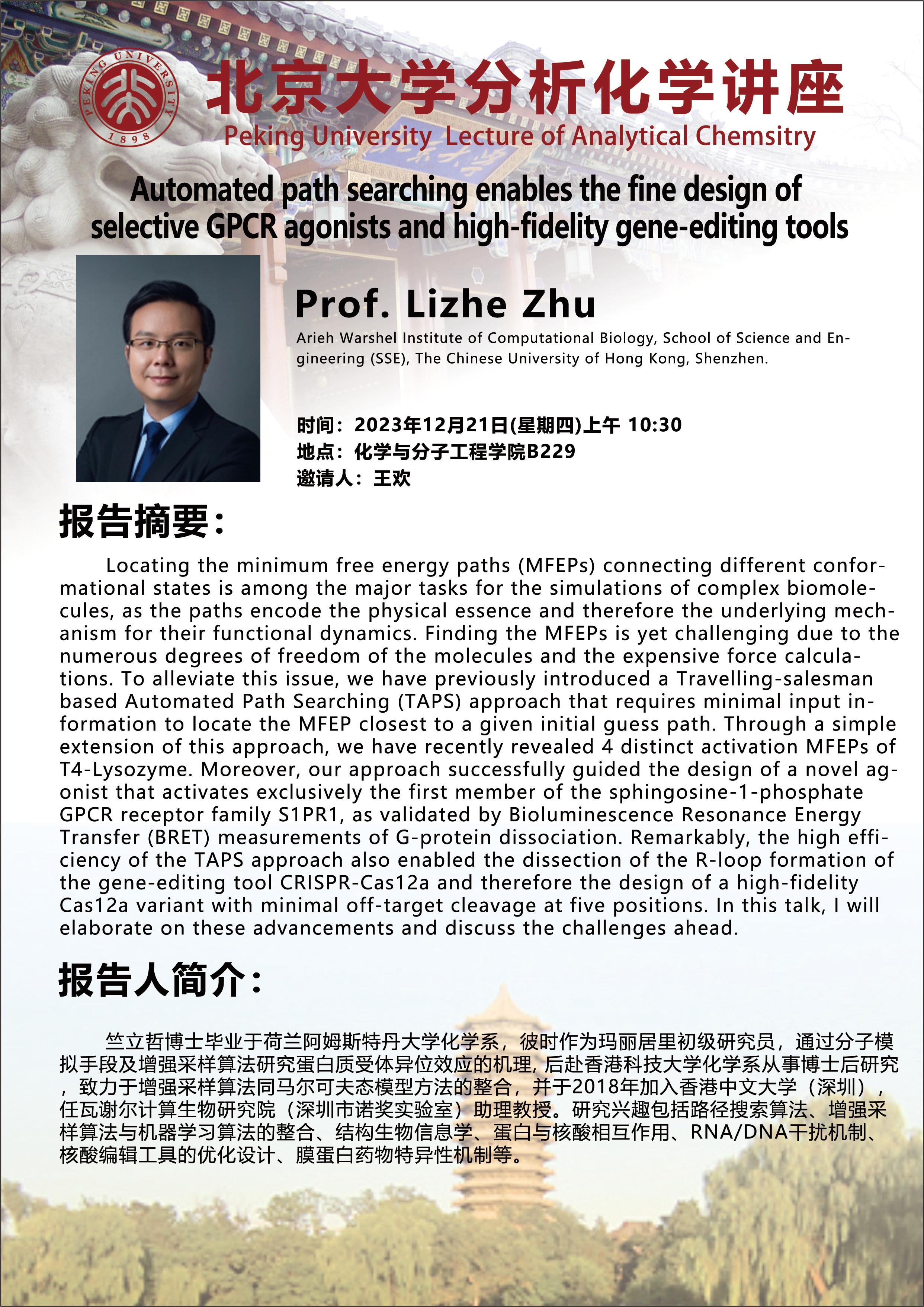 【分析化学学术报告】Automated path searching enables the fine design of selective GPCR agonists and high-fidelity gene-editing tools