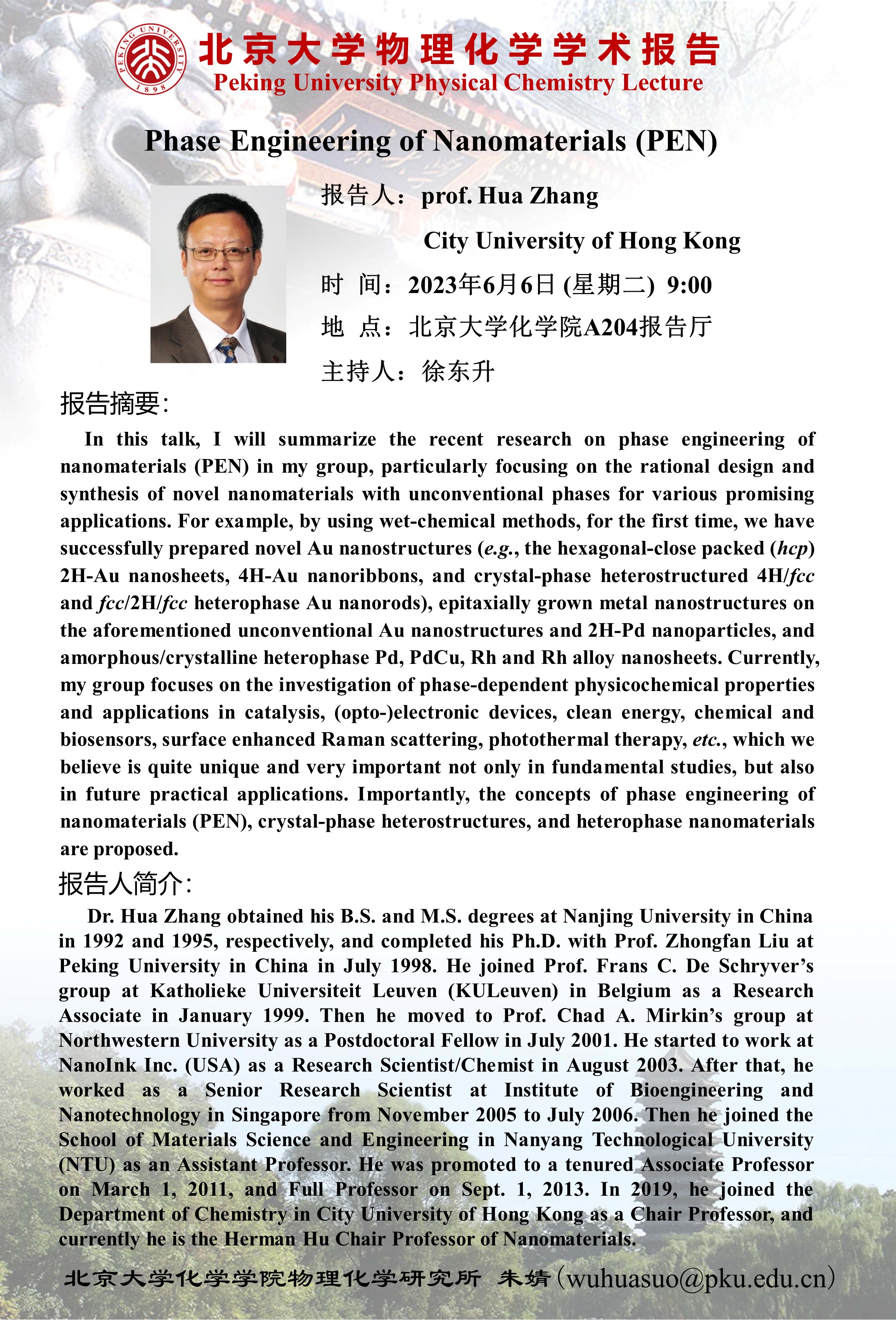 【3003新葡官方网站物理化学学术报告】Phase Engineering of Nanomaterials (PEN)