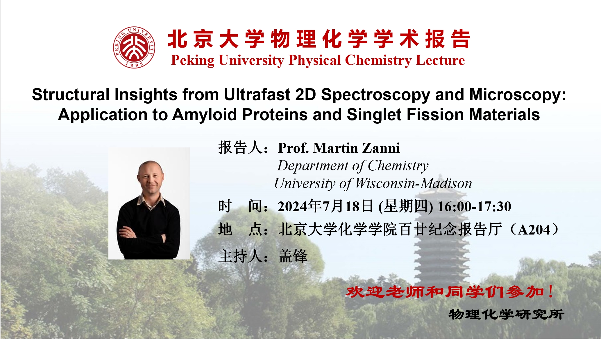 【3003新葡官方网站物理化学学术报告】Structural Insights from Ultrafast 2D Spectroscopy and Microscopy: Application to Amyloid Proteins and Singlet Fission Materials