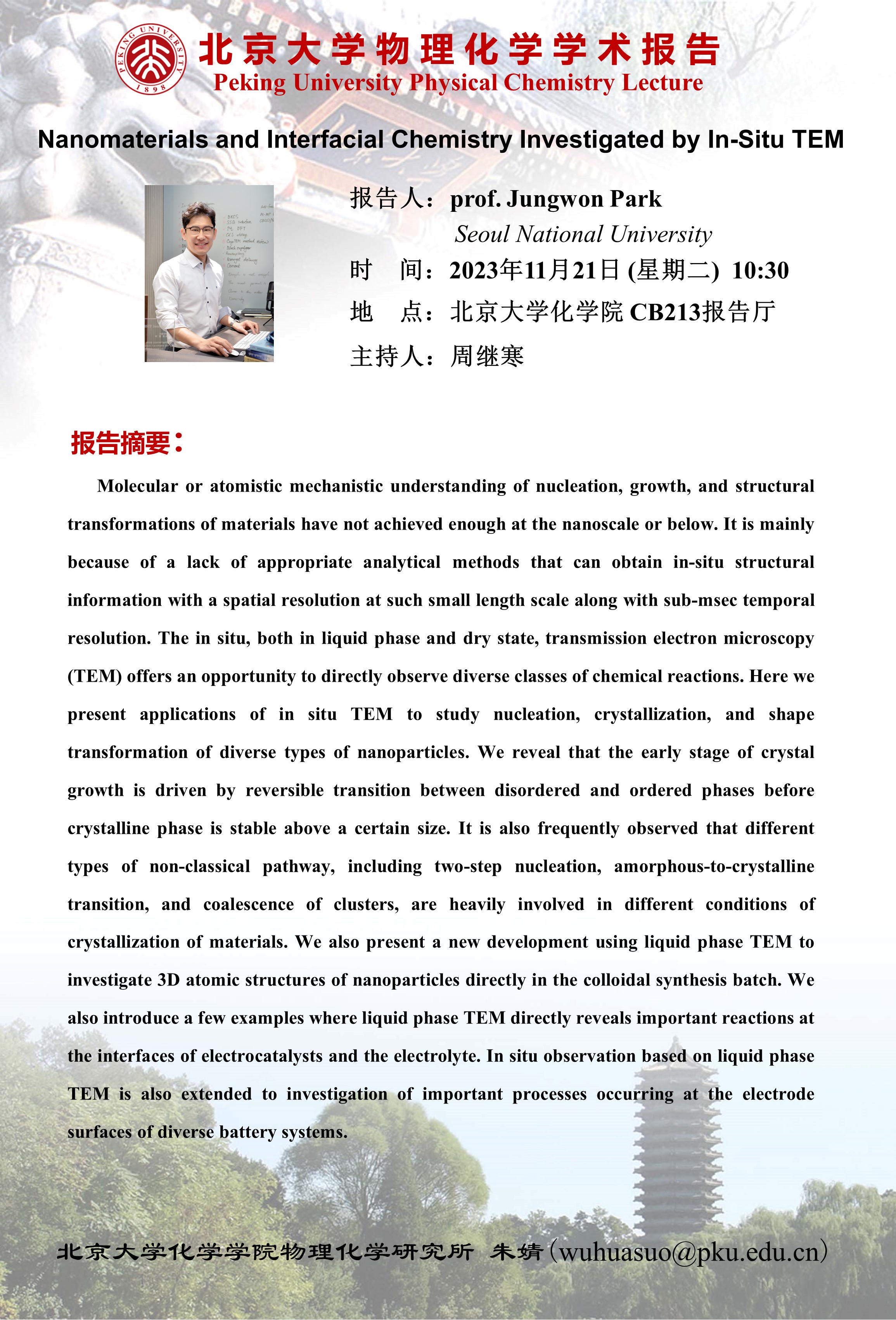 【3003新葡官方网站物理化学学术报告】Nanomaterials and Interfacial Chemistry Investigated by In-Situ TEM