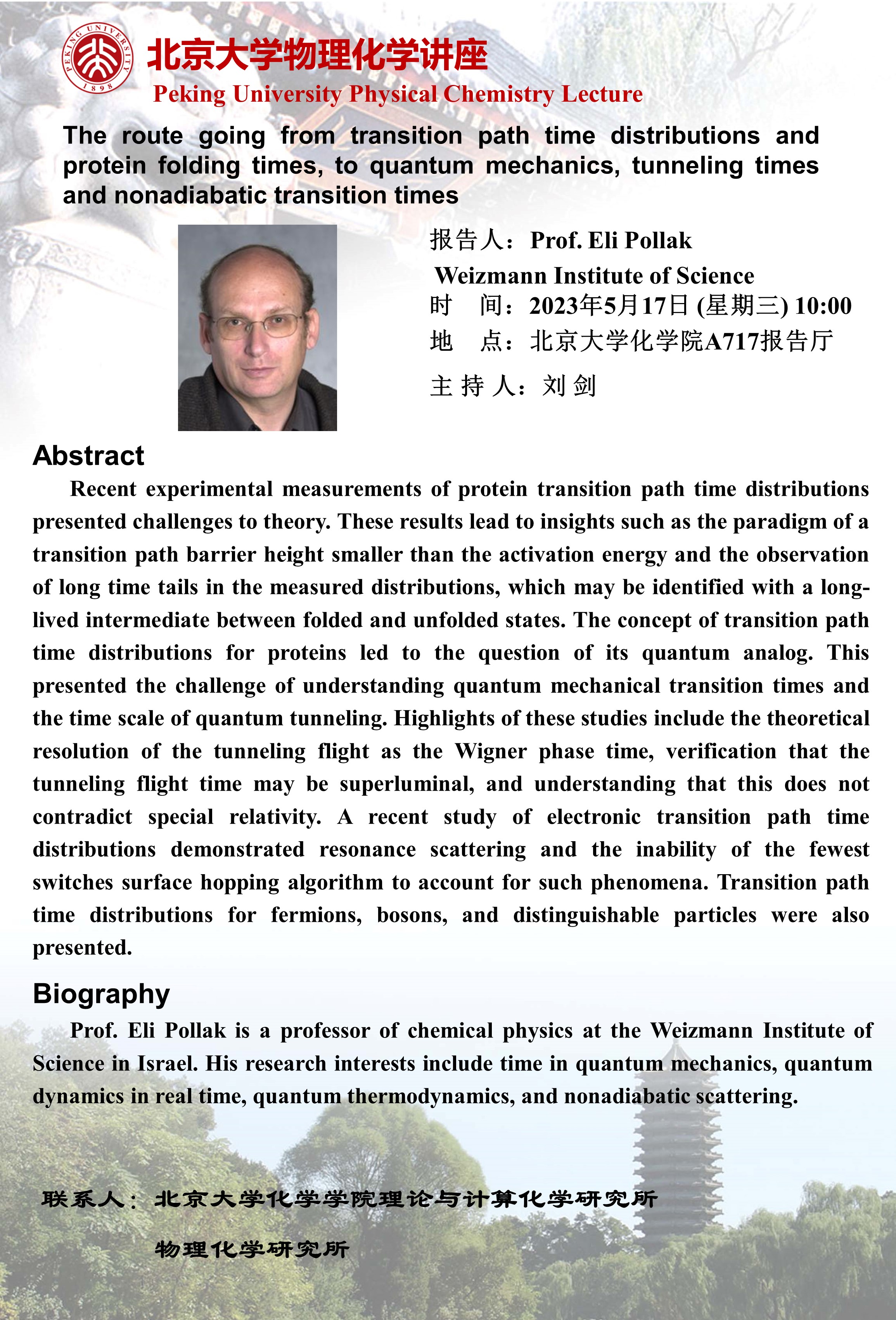 【3003新葡官方网站物理化学讲座】The route going from transition path time distributions and protein folding times, to quantum mechanics, tunneling times and nonadiabatic transition times
