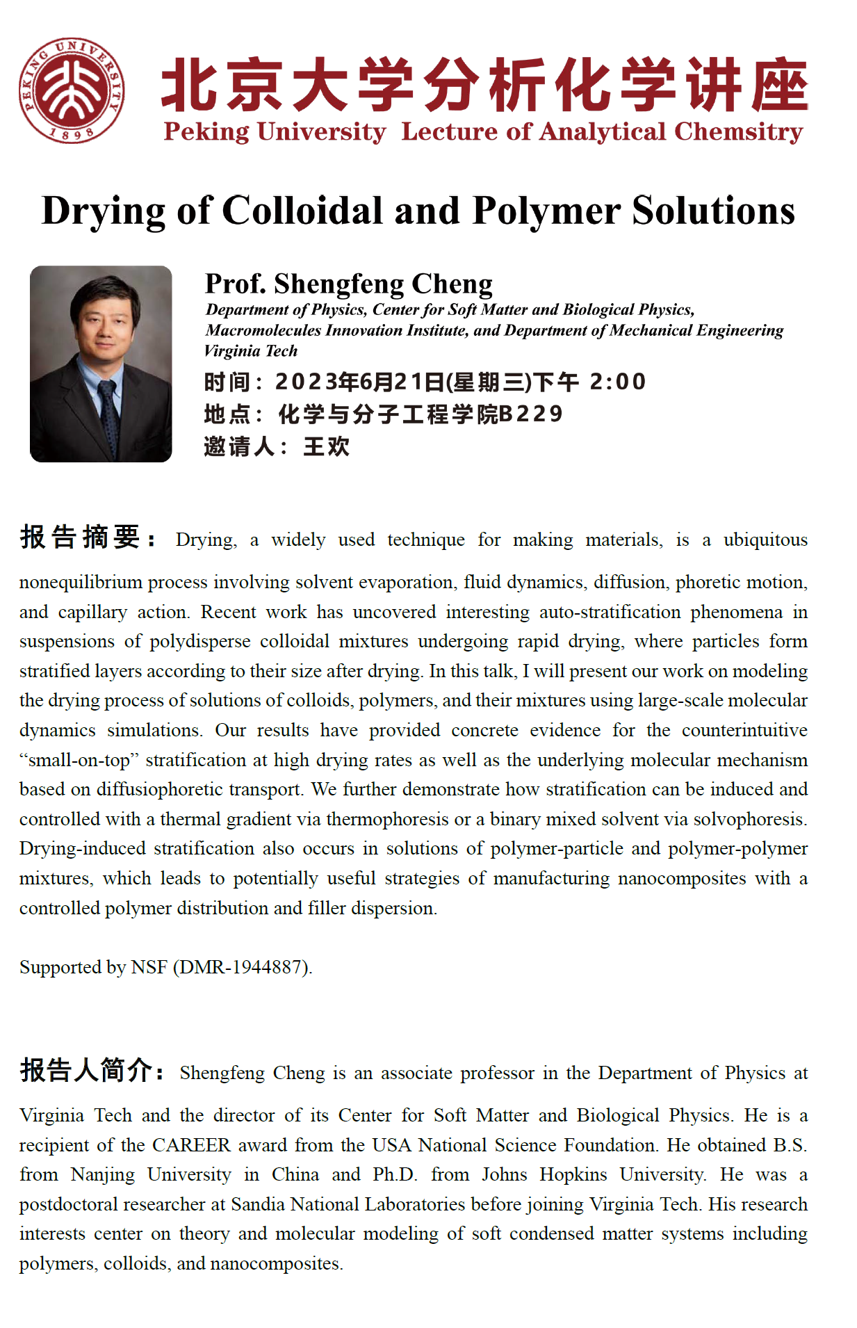 【3003新葡官方网站分析化学讲座】Drying of Colloidal and Polymer Solutions