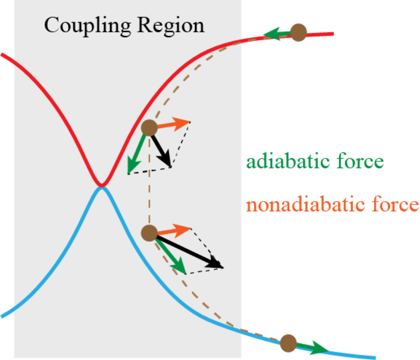 Because the mass difference between nuclei and electrons is of at least three orders of magnitude, the time scales of nuclei and electrons are often well-separated.It led to the well-known Born-Oppenheimer approximation proposed by Max Born and J. Robert Oppenheimer in 1927, serving as the cornerstone for many modern chemical concepts. However, in the region where the potential energy surfaces of different electronic states are close or even degenerate, the coupling terms between these electronic states become important such that electronic and nuclear dynamics are highly correlated. In such a region, the Born-Oppenheimer approximation breaks down, giving rise tononradiative transitions between electronic states. The nonadiabatic processes play a key role in numerous important phenomena in chemical, biological, and materials systems, which include photocatalytic reactions, charge/energy transfer, photosynthesis, and photoelectric conversion.
