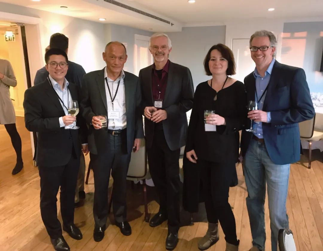 ▲Wenliang Huang (first from the right) at a team dinner during his postdoctoral research.