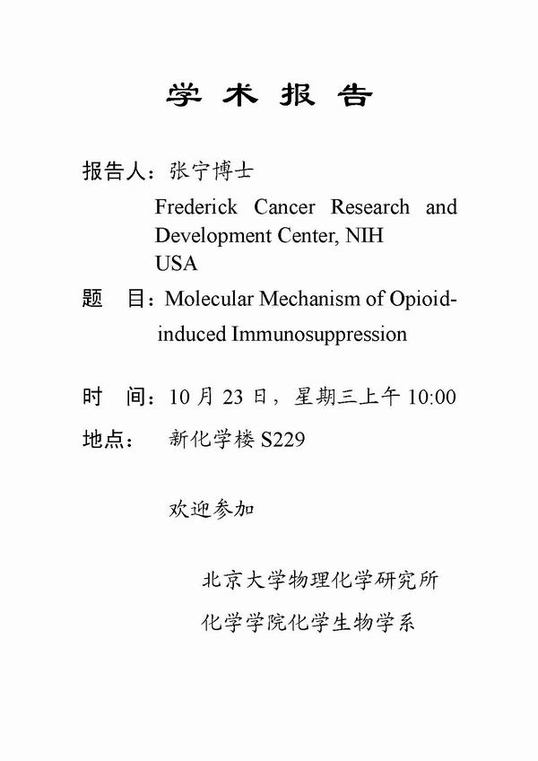 Dr. Zhang Ning from Fredrick Cancer Research and Development Center, NIH USA will present a talk on Oct 23. More>>