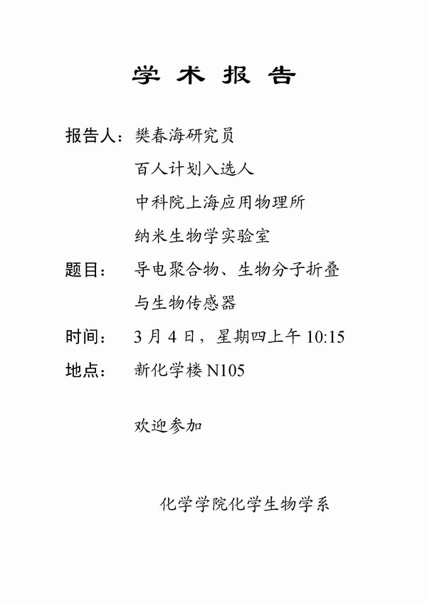 Dr. Fan Chun Hai, Shanghai Institute of Applied Physics, CAS will present a talk on March 4. More>>