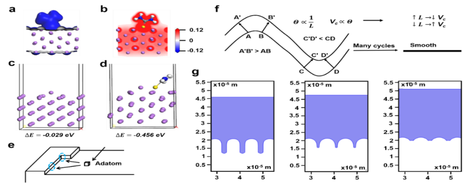 最近,他们进一步提出使用含S共轭结构的分子作为电解液添加剂,其中以硫脲为代表调控锂离子在电极与电解液界面上的成核和生长,以实现均匀的金属锂沉积。硫脲分子可以吸附在Li金属表面,促进Li生长,通过超填充机制实现了高电流密度下无枝晶的锂沉积(下图)。作者提出的这一以促进锂沉积的方式去避免锂枝晶的产生策略,能够实现高倍率条件下稳定的锂金属嵌入和脱出,与正极材料匹配组装全电池,表现出很好的大电流充放电能力和循环稳定性。这类添加剂成本低廉,有望成为新一代动力电池电解液添加剂的有力候选。该工作近期在线发表于Adv. Mater上(Adv. Mater.,2019, 1903248)。