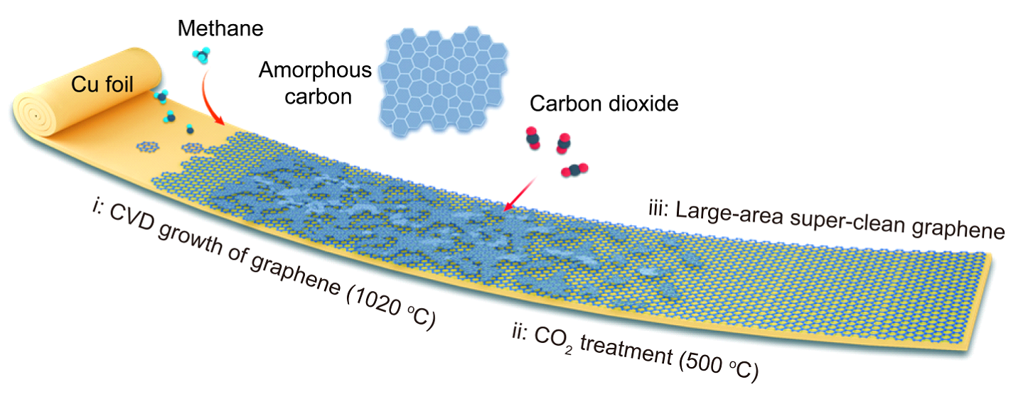 图4. 二氧化碳选择性刻蚀制备超洁净石墨烯