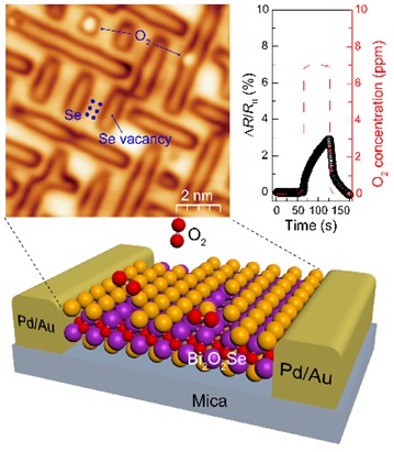 图1:二维Bi2O2Se晶体表面氧分子吸附及其对痕量氧的检测