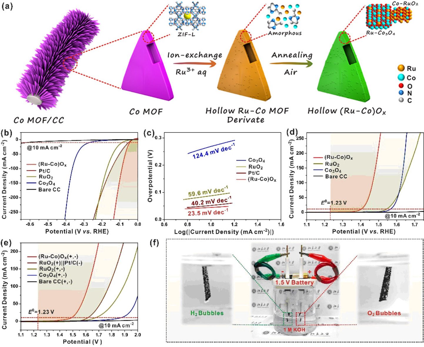 图1 (Ru-Co)Ox中空纳米片阵列应用于碱性全电解水