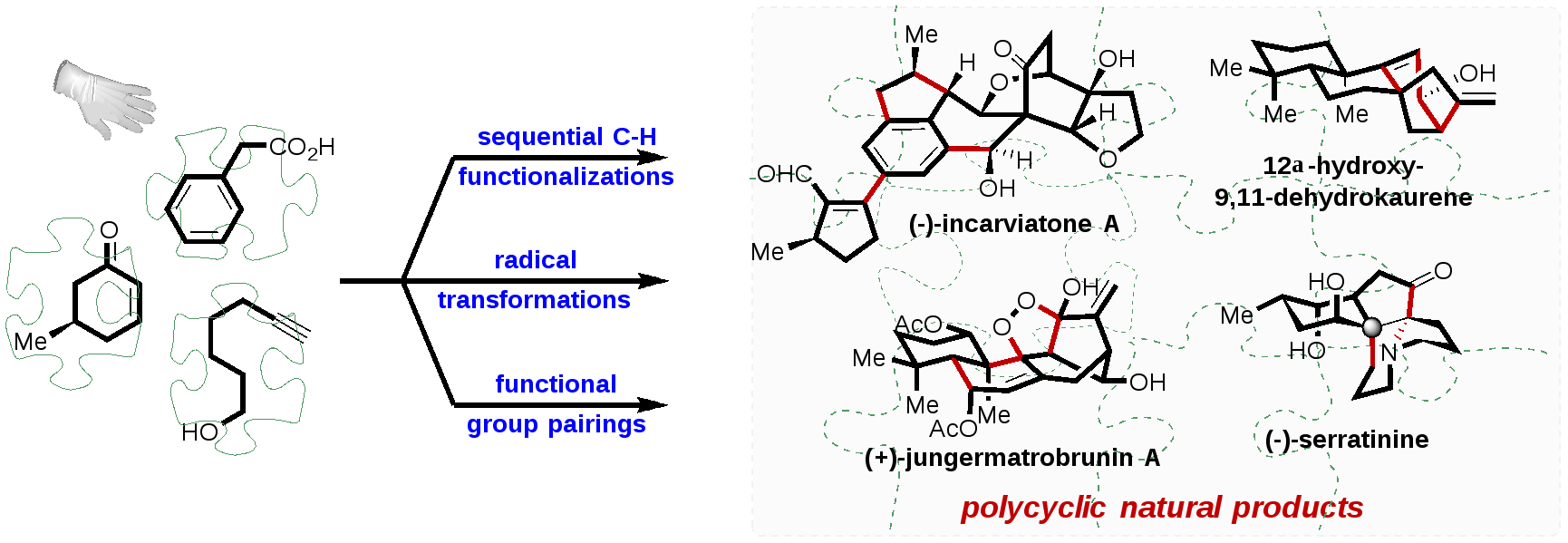 众所周知,结构多样的多环天然产物,是人类医药的重要来源之一,也是开展机理导向的化学生物学研究的重要工具分子。他们复杂多变的结构,不断挑战着合成化学家发展新颖高效的合成方法以完成对这些多环天然产物的快速构建。