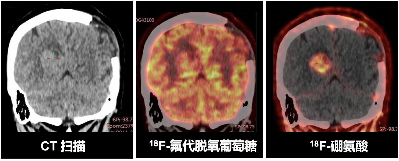 图1. 18F-硼氨酸用于脑部肿瘤的临床诊断