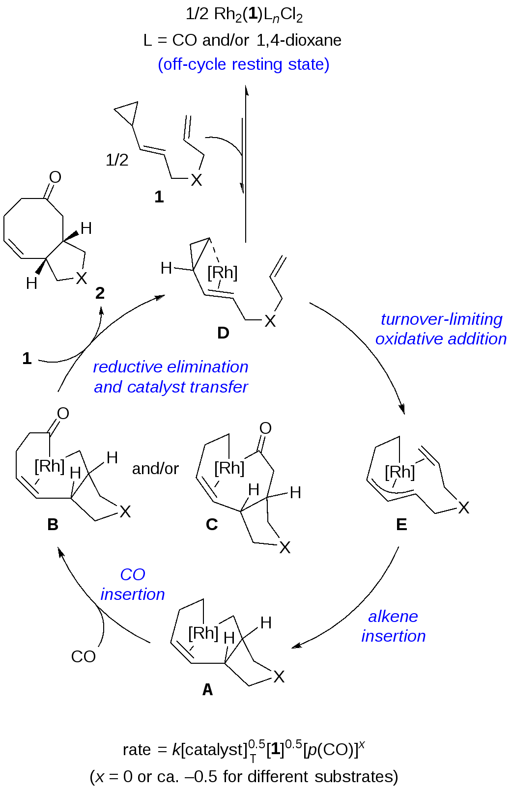 图3. [5+2+1]环加成反应的催化循环(图片来源:JACS)。