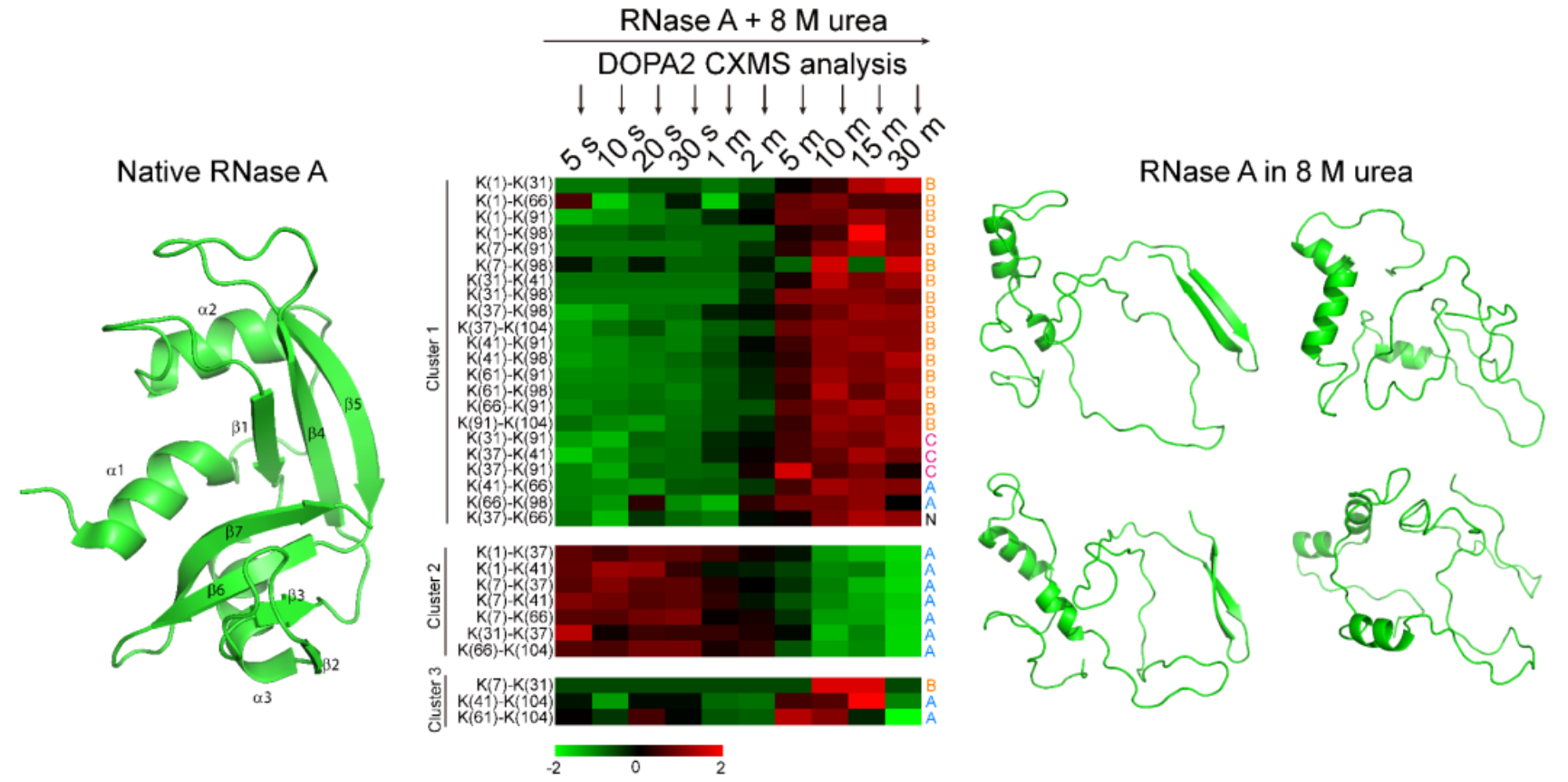图3. DOPA2交联质谱技术分析RNaseA在8M尿素中的变性过程