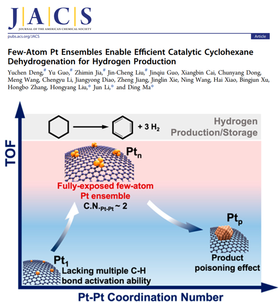 图2. Pt催化剂在环己烷脱氢过程中的集团效应,FECC具有最优活性(J. Am. Chem. Soc. 2022, 144, 8, 3535–3542)