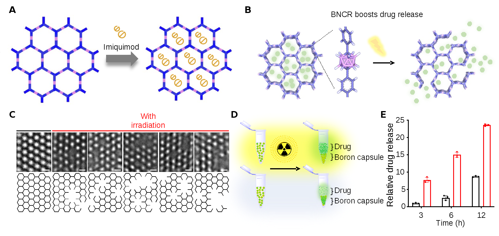 近日,3003新葡官方网站刘志博教授与浙江大学药学院顾臻教授在《自然·通讯》(Nature Communicaitons)上发表题为“Localized Nuclear Reaction Breaks Boron Drug Capsules Loaded with Immune Adjuvants for Cancer Immunotherapy”的研究论文。报道了一种可以响应中子照射实现药物缓释的碳硼烷骨架的共价有机材料,并将免疫激动疗法与硼中子俘获疗法相结合,探究了该策略的肿瘤治疗效果。