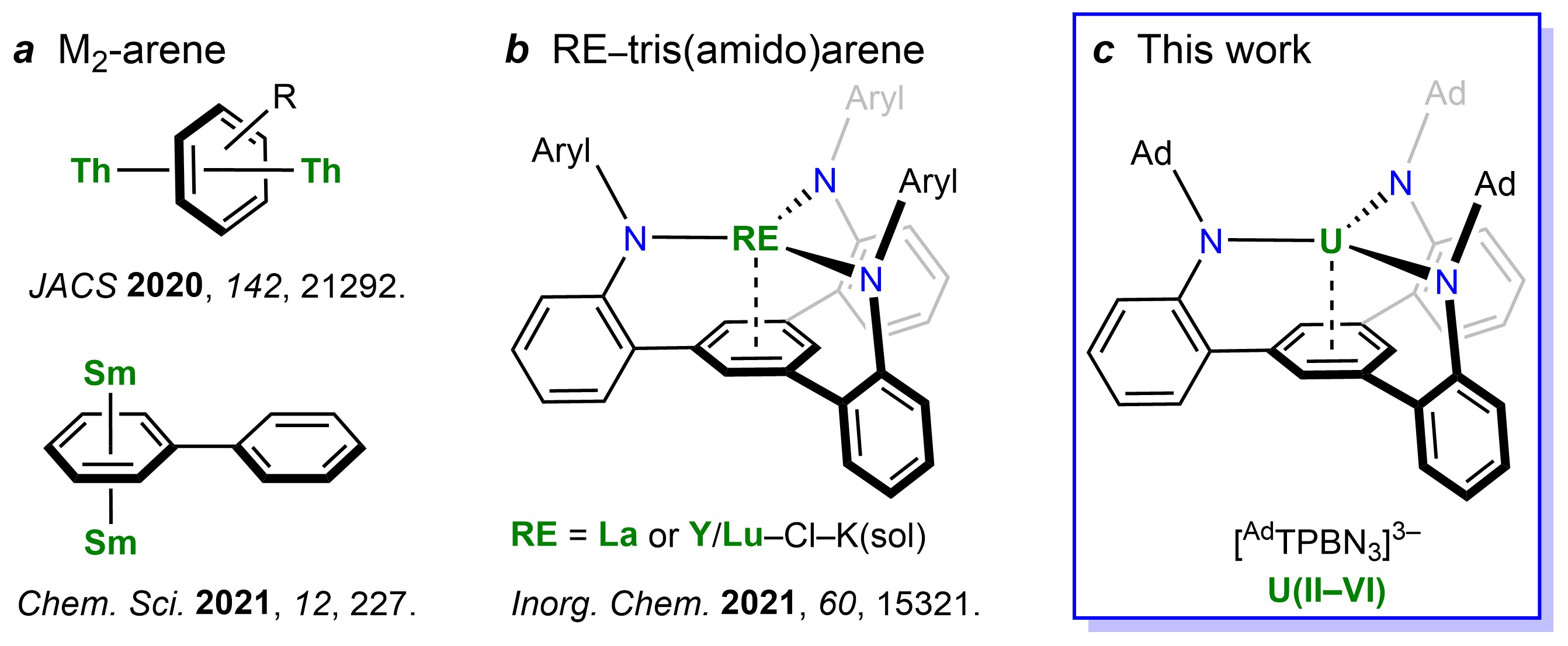 图1 课题组近期围绕“f区金属–芳烃相互作用”开展的工作
