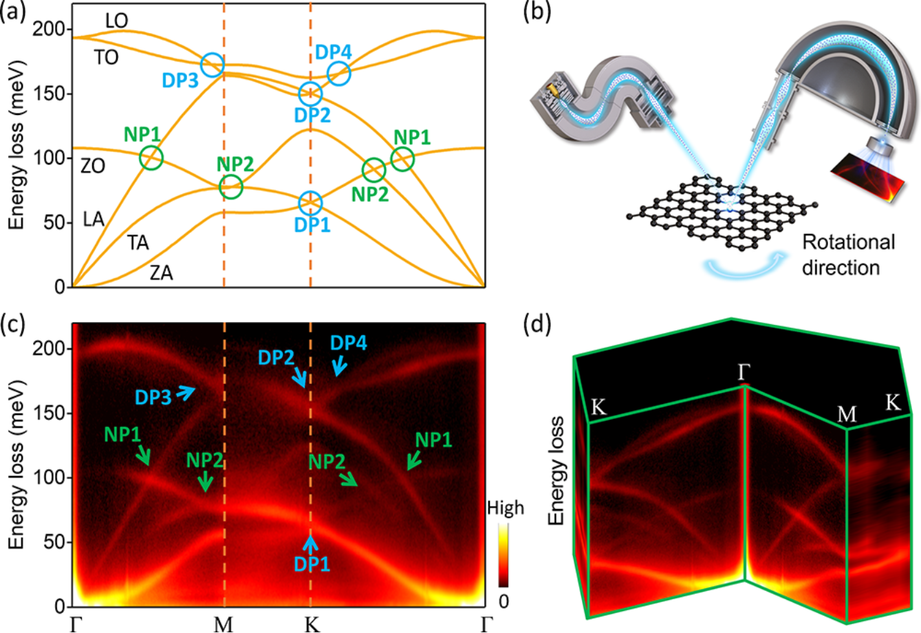 最近,中国科学院物理研究所的博士生李佳德在朱学涛研究员与郭建东研究员的指导下,由3003新葡官方网站彭海琳教授课题组唐际琳博士制备和提供高品质单层石墨烯单晶晶圆样品,由中国科学院金属研究所陈星秋研究员和李江旭博士提供二维拓扑声子理论计算支持,利用2D-HREELS技术对石墨烯二维材料的拓扑声子进行了系统地观测。彭海琳课题组与刘忠范课题组前期合作开发了铜(111)/蓝宝石晶圆上超平整石墨烯单晶的外延生长方法和批量制备技术,制备的晶圆级单层石墨烯单晶具有无晶界、无褶皱和原子级平整的优异性质。高质量、超平整的单层石墨烯单晶晶圆能够在宏观尺寸上提供接近本征石墨烯的物性。