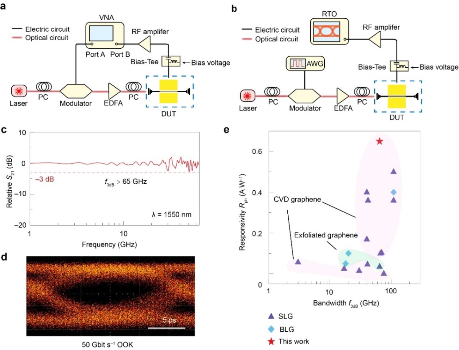 图3. 硅波导集成tBLG探测器的高频响应表征。