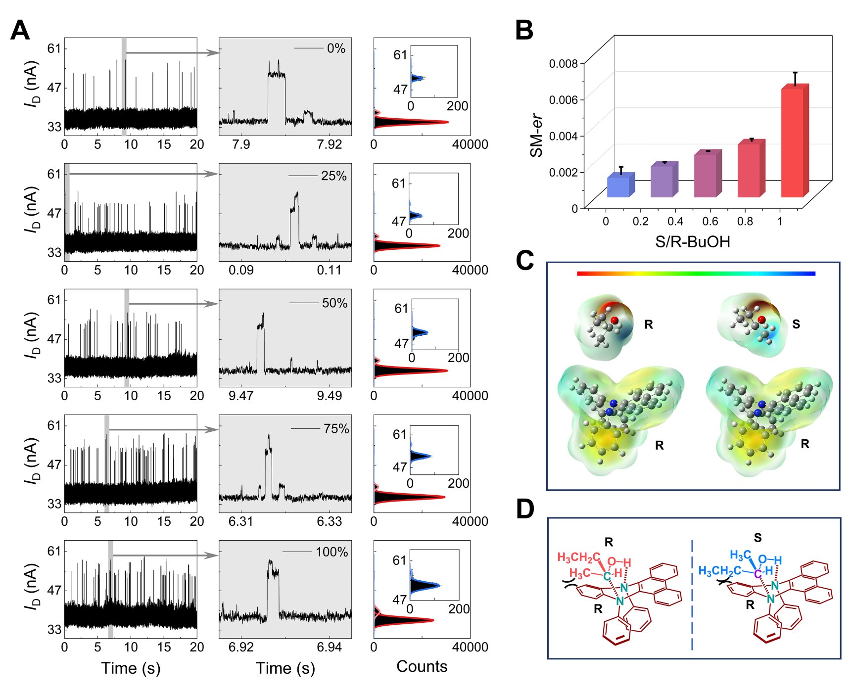 手性相互作用是自然界产生选择性合成的重要原因之一。手性的细微差异会导致性质的巨大变化,开发调节手性的方法和阐明手性机制以实现功能系统的构建是至关重要的。对于三级胺分子,其翻转过程将会带来分子手性的变化,单分子平台可以对其手性变化过程进行有效的监测与调控,为单分子手性富集、固定与识别提供了可靠技术。