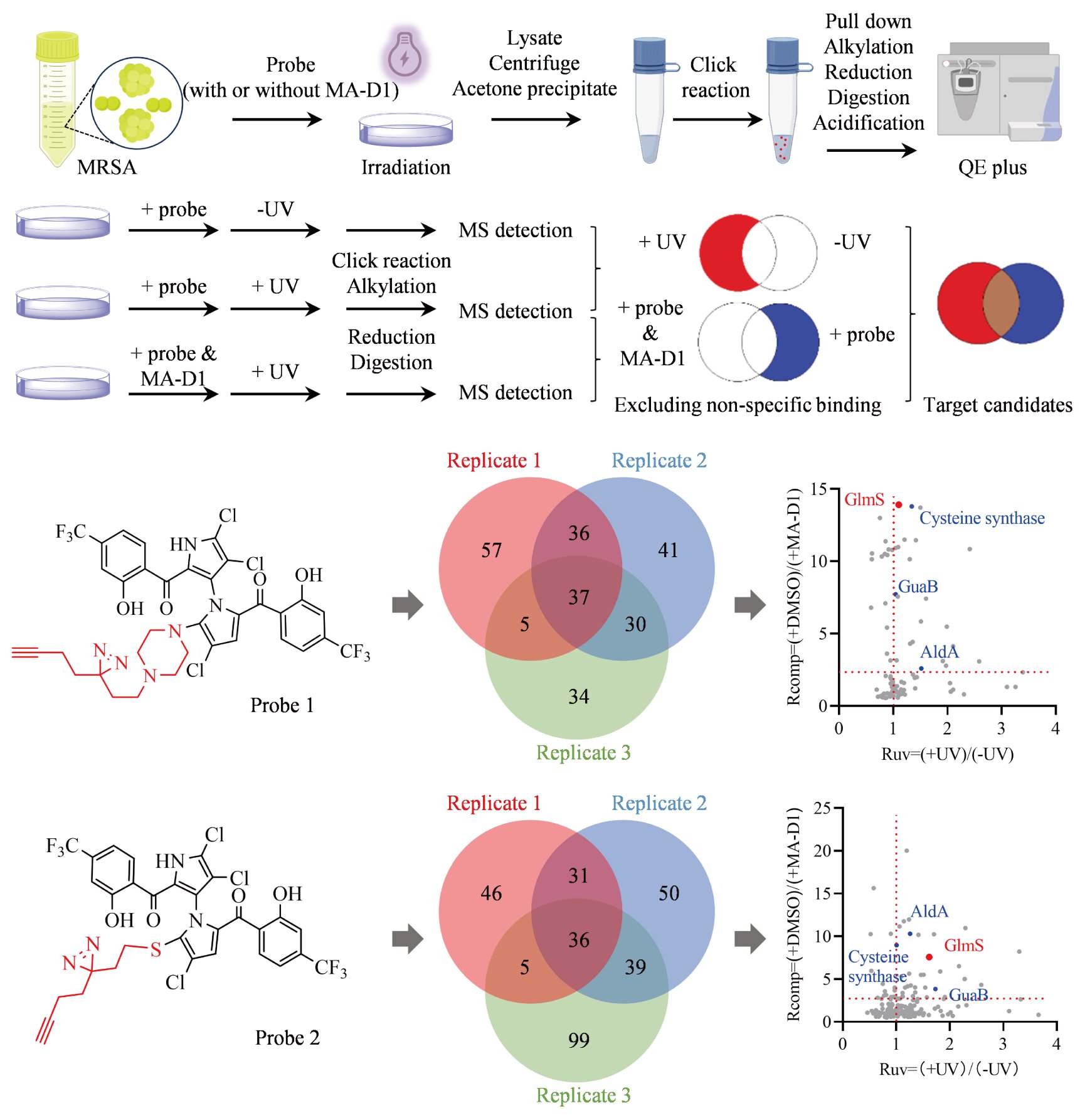 图1. 化学蛋白质组学鉴定MA-D1在MRSA菌内的生物学靶点