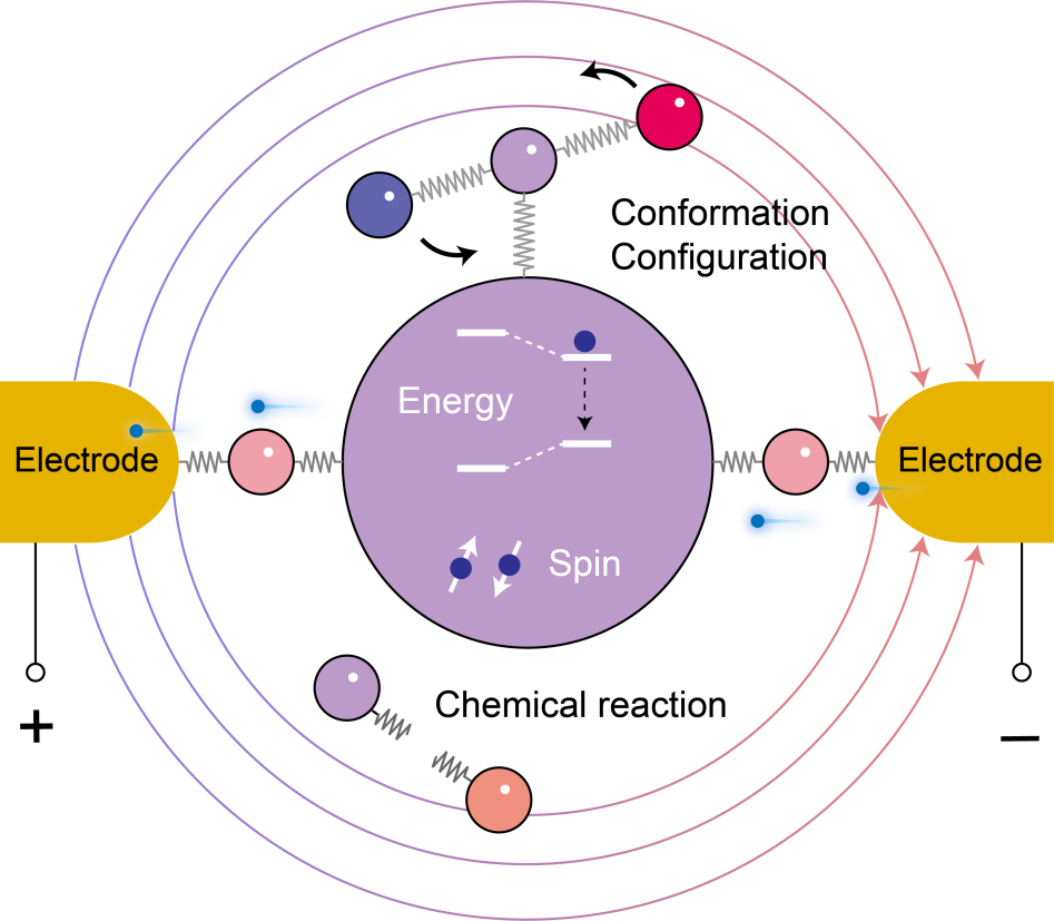 最后,综述系统回顾了电场如何在分子光物理、电荷输运、构象变化以及化学反应中调节分子行为的具体实例,这些实例涵盖了发射光谱的强度、波长、滞回及激发态演化、电流幅值与电子自旋、分子的自由运动与分子内相对运动,以及化学反应的热力学、动力学与选择性的调控。经过全面回顾,他们认为电场对某些分子的影响是全面而综合的(图2)。例如,电子注入与分子构象的调控可以同时影响光物理及电子传输特性;电场的调控还可以调整配位化合物的配体构象,进而调制中心金属的自旋态,影响器件的电子传输性质;电场还能够调节团簇内原子的运动,实现电子传输的铁电性。值得期待的是,除匀强电场外,分子在复杂电场作用下将展现更加奇妙的性质,将引发深入的研究。