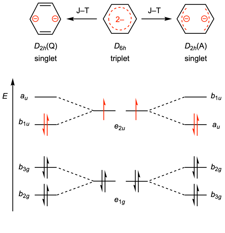 图1. Jahn–Teller效应与苯二负离子的基态
